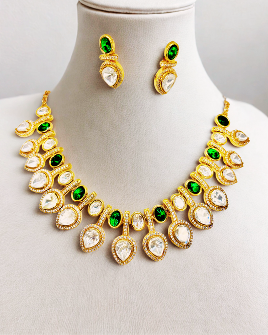 Crystal Drop Gold-Plated Kundan Necklace Set