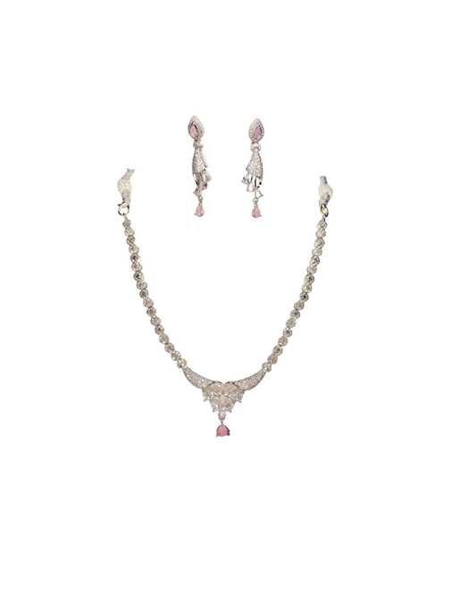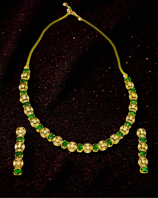 Emerald-Cut AD Stone Necklace Set with Earrings.
